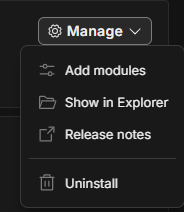 歯車マークの Manage を押すと、こんな項目が出てきます