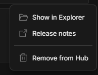 けどもし、手動インストールしたものをUnityHubに認識させていたら、こんな項目になります